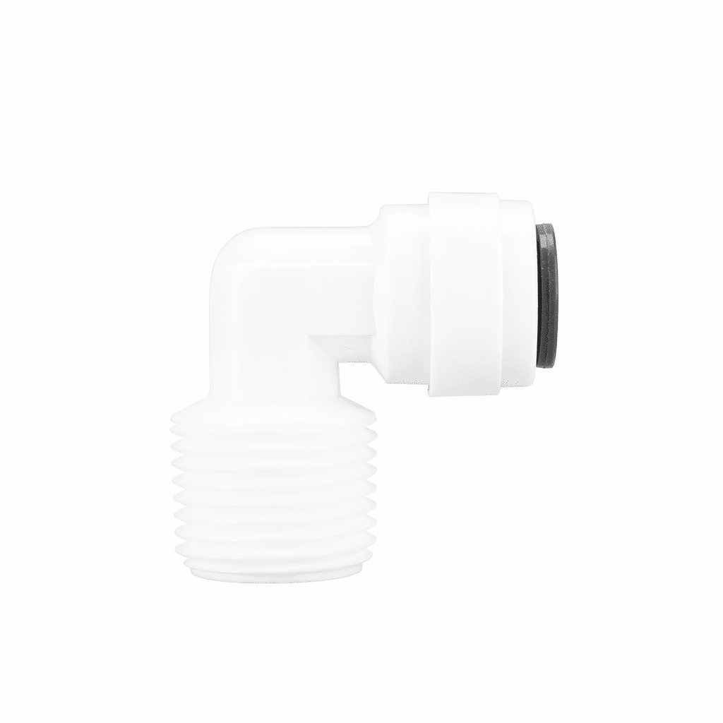 - Type : raccord équerre 90° 1/4″ push-fit + filetage mâle 3/8″.